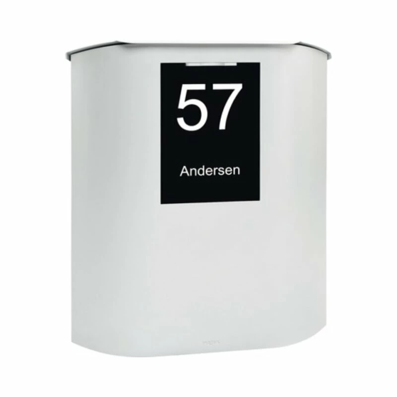 großem Namensschild. Briefeinwurf unter der stabilen Einwurfklappe oben.