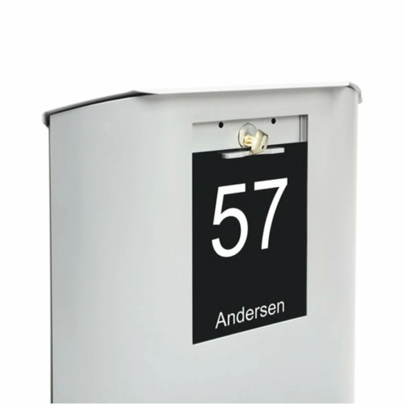 Das Schloss für die aufklappbare Front befindet sich unter dem Namensschild, welches sich leicht herunterschieben lässt.