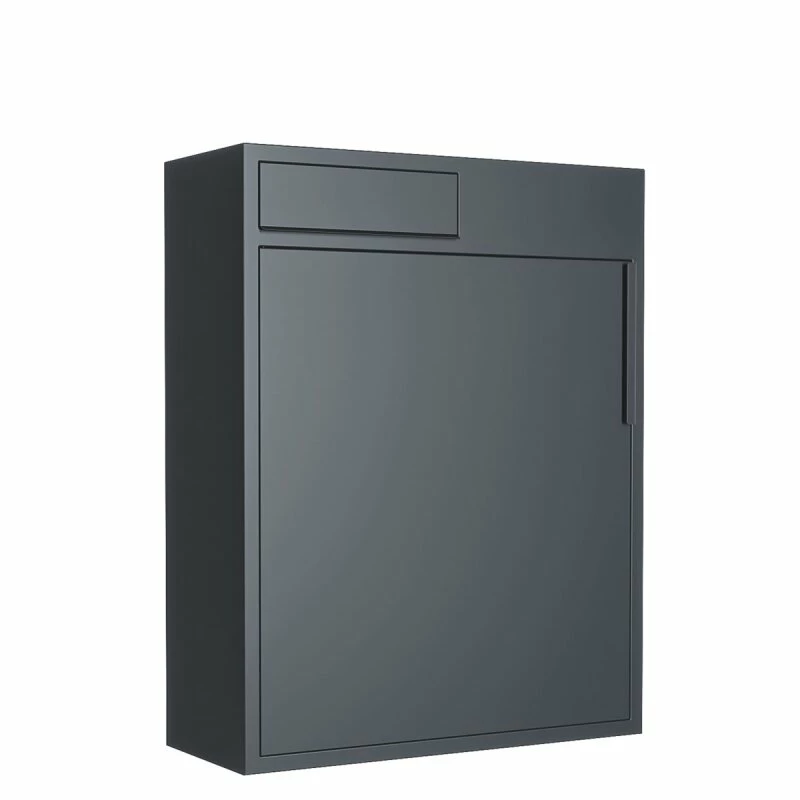 Der Paketbriefkasten aus pulverbeschichteten Edelstahl besticht mit ihrem extra großen Fassungsvemögen in Kombination mit einem eleganten schlichten Design. Dies wird durch die klaren Strukturen und der Blockform erreicht. Der Einwurf für Pakete sowie die Entnahmeklappe befinden sich hinter einer großzügigen Frontklappe. Hierdurch wird das moderne Design abgerundet.
