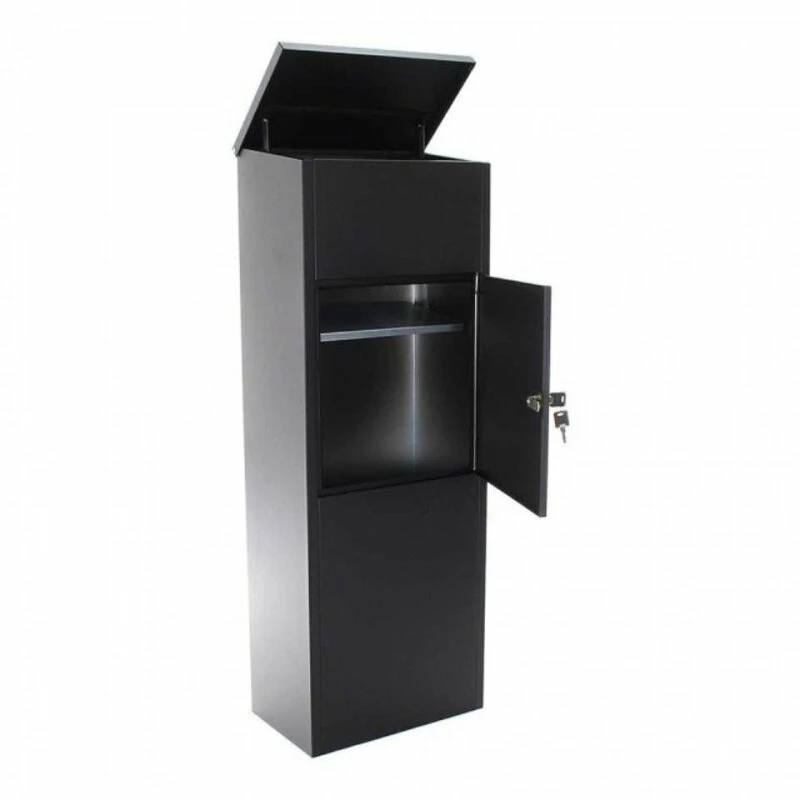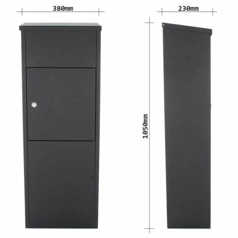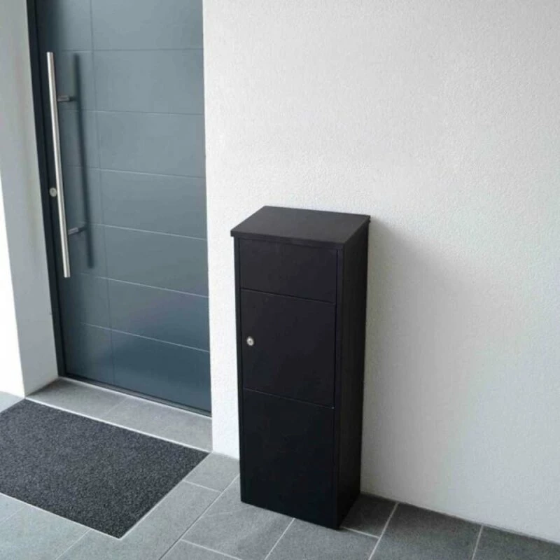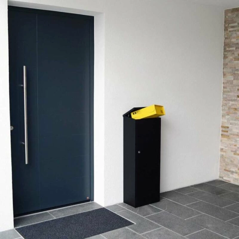 Die Annahme Ihrer Pakete, wenn Sie nicht zu Hause sind, erledigt der schwarze Rottner Stand Paketbriefkasten Parcel Keeper 1000 für Sie. Das Paket wird vom Zusteller oben eingeworfen. Pakete können von oben eingeworfen, aber nicht von oben entnommen werden!