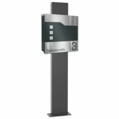 Säulenbriefkasten inkl. Zeitungsfach DB 703 Graphit mit Edelstahl Laser Namensblende