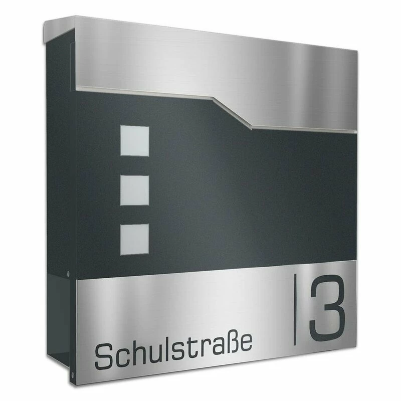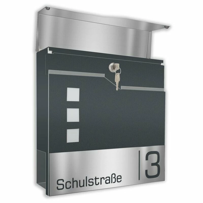 Briefkasten aus beschichtetem Edelstahl in anthrazit grau RAL 7016 pulverbeschichtet – modernes Design