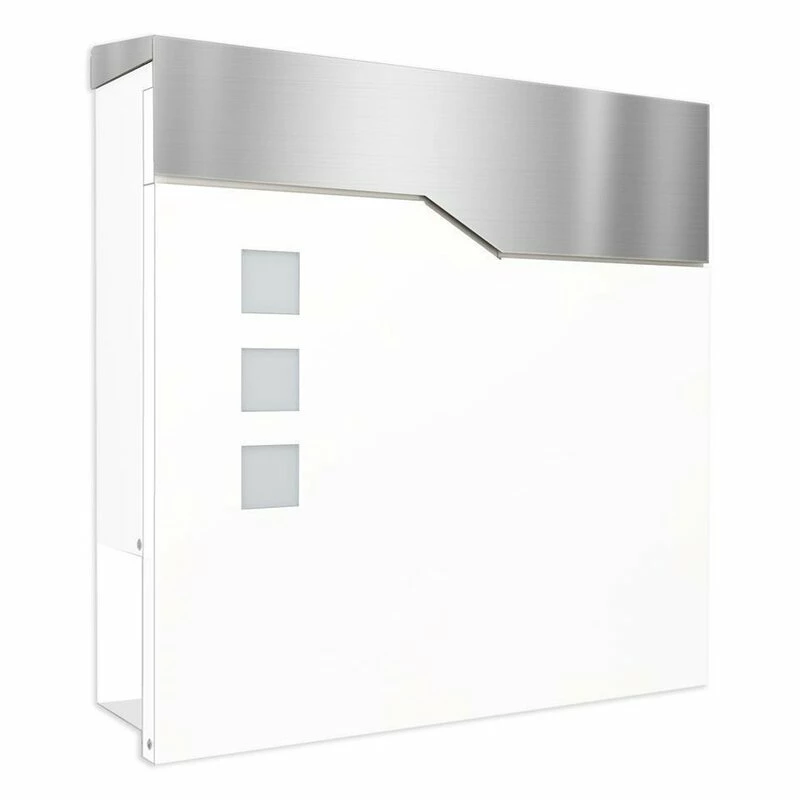 Briefkasten aus beschichtetem Edelstahl in weiß RAL 9016 pulverbeschichtet – modernes Design