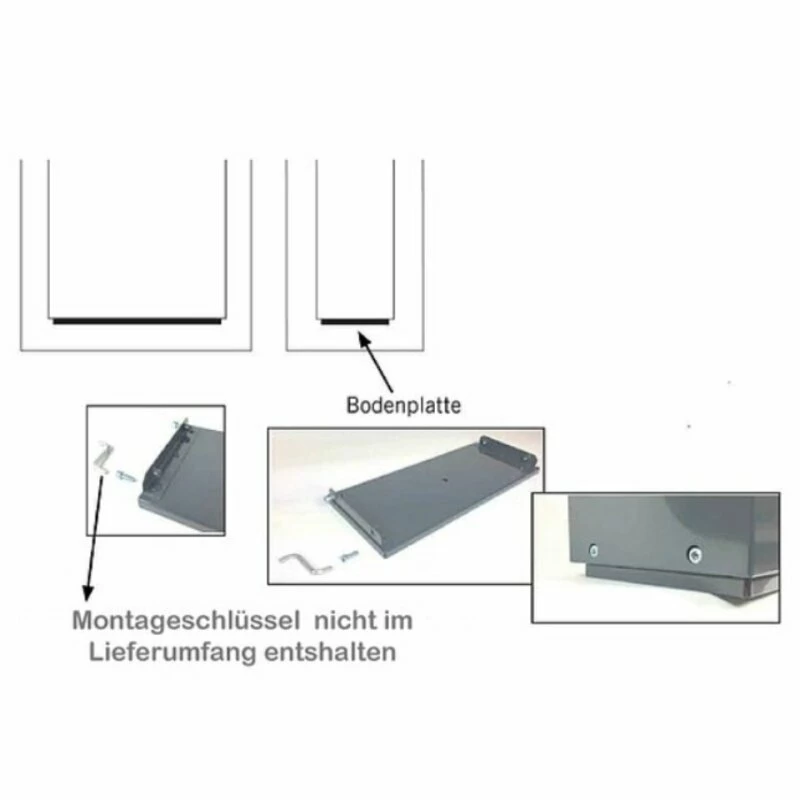 - 5. Montieren Sie den Briefkasten. Verwenden Sie bitte unbedingt die Abstandhalter, damit sichergestellt ist, dass der Briefkasten sich einwandfrei öffnen lässt. Durch die verwendeten Abstandhalter entsteht unter Umständen der Eindruck, dass die Schrauben nicht fest genug angezogen sind. Bitte achten Sie bei der Montage darauf, dass Sie die Abstandhalter nicht zu stark komprimieren, da sich der Briefkasten sonst nicht einwandfrei öffnen lässt. Sollte dies der Fall sein, die Schrauben bitte wieder ein wenig lösen.
