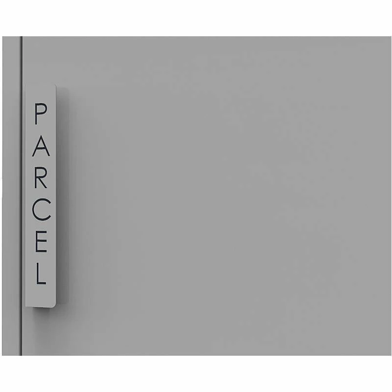 Exklusives Design: Formschöner „Post“- Schriftzug unterhalb des Posteinwurffaches und „Parcel“- Schriftzug auf dem Paketfachgriff.