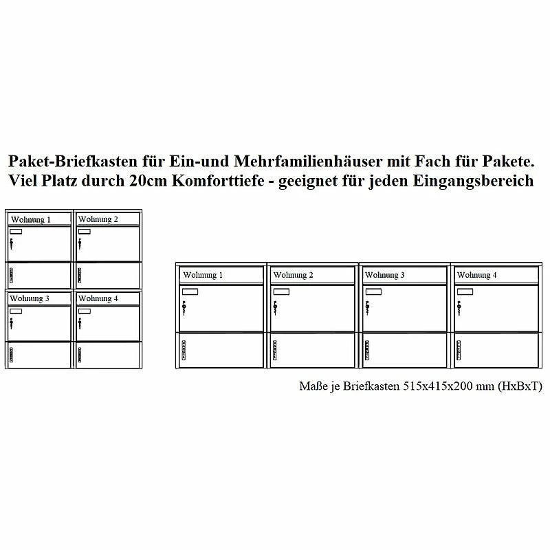 Je Wohnung kann ein Paketbriefkasten nebeneinander montiert werden (Batterienmontage bei Mehrfamilienhäuser)