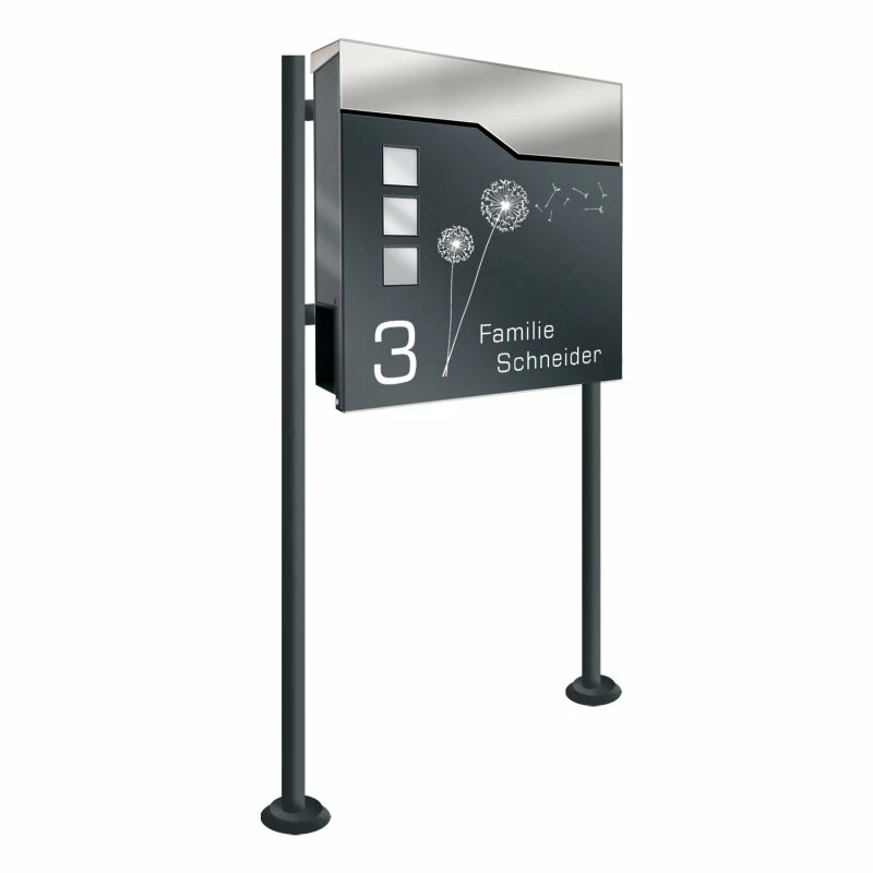 Standbriefkasten Set Toppy3 in ANTHRAZIT GRAU RAL 7016 pulverbeschichtet mit Beschriftung