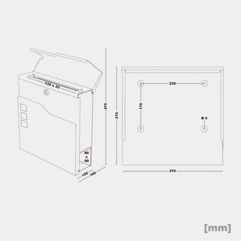 Abmessungen Briefkasten: 37 x 37 x 10,5 cm