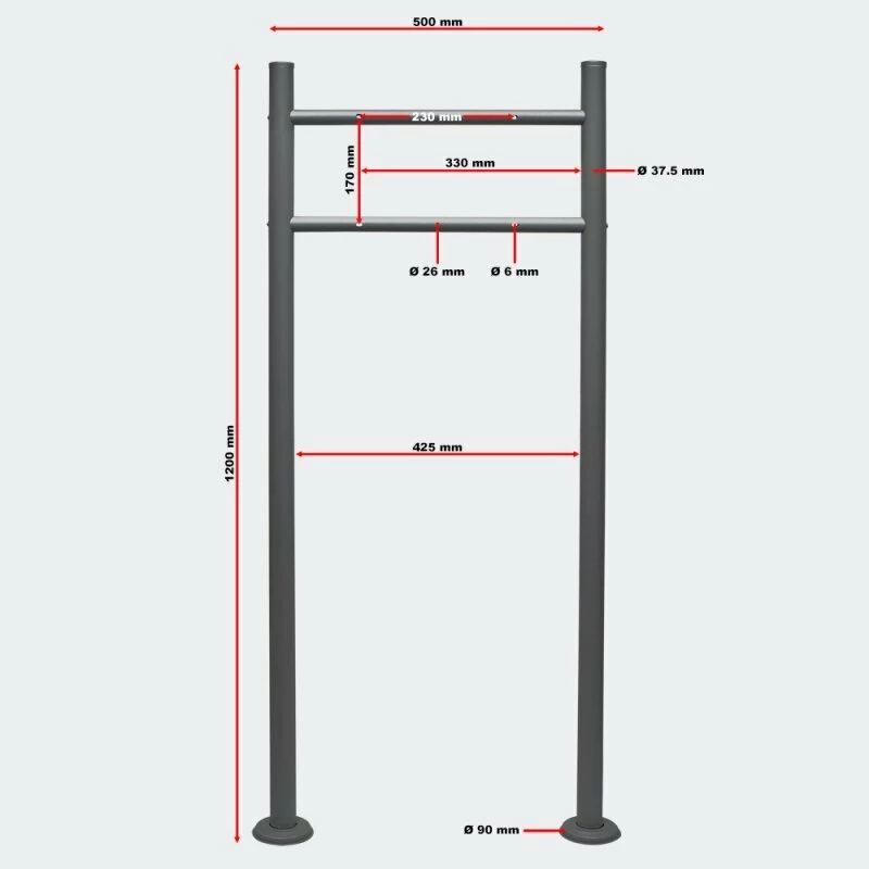 Abmessungen Standfuß: 120 x 50 cm / 1,2 m x 0,5 m (HxB)