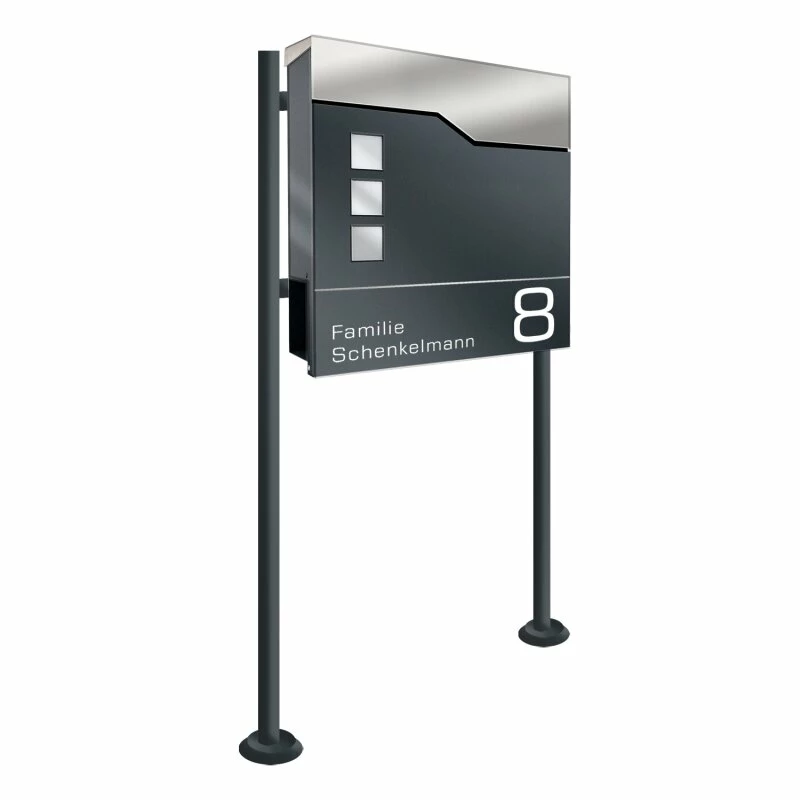 Standbriefkasten Set Toppy4 in ANTHRAZIT GRAU RAL 7016 pulverbeschichtet mit Beschriftung