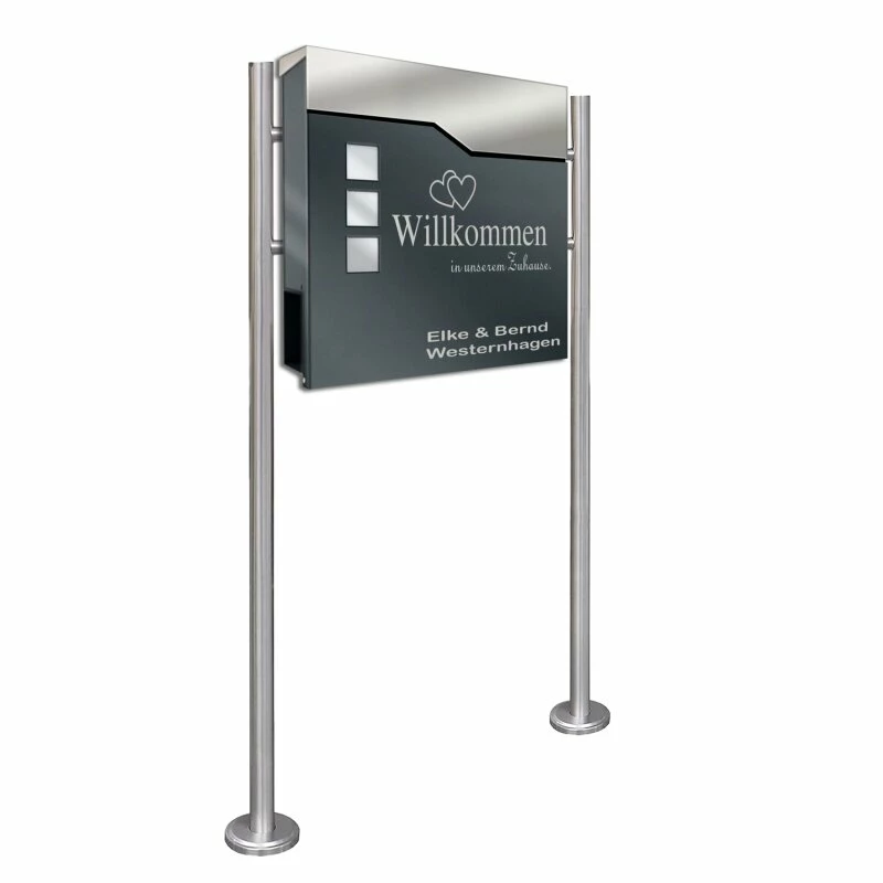 Standbriefkasten ANTHRAZIT mit Beschriftung Briefkasten Postkasten Birgit
