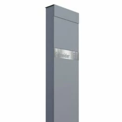 Der Standbriefkasten besticht durch seine klaren Strukturen in Blockform. Der Briefkasten ist ein freistehender Einzelbriefkasten zur Bodenmontage auf freier Fläche. Einwurf und Entnahme erfolgen bei diesem Modell von vorne über die Einwurfklappe und eine aufgesetzte Frontklappe. Das Schloss befindet sich witterungsgeschützt unterhalb der Einwurfklappe, wodurch auch das klare Design nicht unterbrochen wird. Die Edelstahl Lasercut Blende kann frei nach Ihren Angaben beschriftet werden.