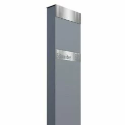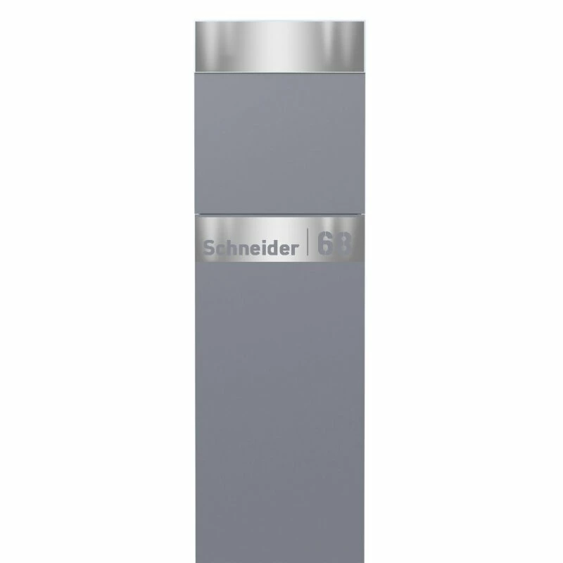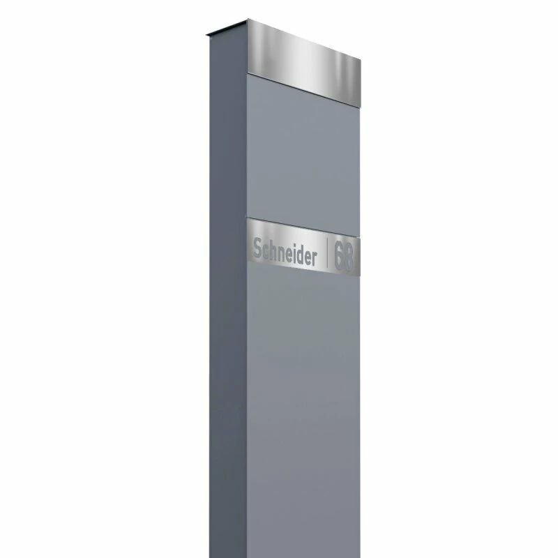 Standbriefkasten Briefkasten Grau Metallic RAL 9007 mit Edelstahl Lasercut Namensblende