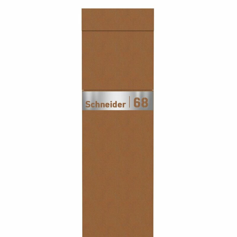 Standbriefkasten Briefkasten Rost RAL 8001 mit Edelstahl Lasercut Namensblende