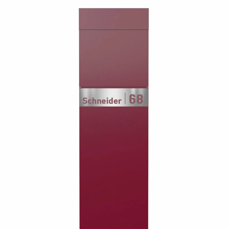 Standbriefkasten Briefkasten Rot RAL 3004 mit Edelstahl Lasercut Namensblende