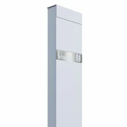 Der Standbriefkasten besticht durch seine klaren Strukturen in Blockform. Der Briefkasten ist ein freistehender Einzelbriefkasten zur Bodenmontage auf freier Fläche. Einwurf und Entnahme erfolgen bei diesem Modell von vorne über die Einwurfklappe und eine aufgesetzte Frontklappe. Das Schloss befindet sich witterungsgeschützt unterhalb der Einwurfklappe, wodurch auch das klare Design nicht unterbrochen wird. Die Edelstahl Lasercut Blende kann frei nach Ihren Angaben beschriftet werden.
