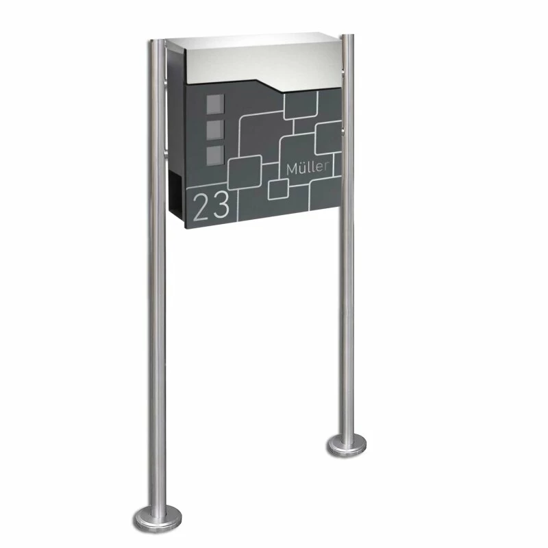 Standbriefkasten Edelstahl ANTHRAZIT RAL 7016 mit Beschriftung Vertigon