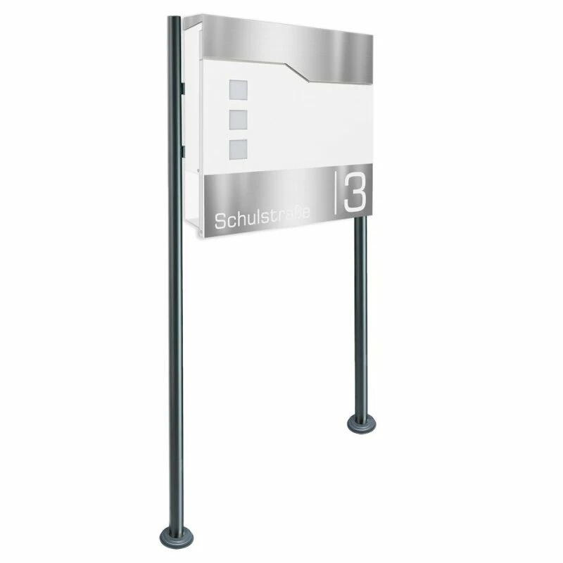 Standbriefkasten aus beschichtetem Edelstahl in weiß RAL 9016 pulverbeschichtet – modernes Design