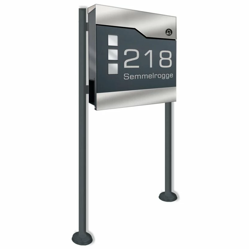 incl. Standfuß in ANTHRAZIT GRAU RAL 7016 für die freistehende Montage. Briefkasten mit Ständer zur freistehenden Montage. Die Montage funktioniert kinderleicht über Dübel, welche durch den Standfuß im Boden verankert werden. So lassen sich das Aussehen und vor allem der Platz, an welchem der Briefkasten aufgestellt wird, einfach an die eigenen Bedürfnisse anpassen. Der Gravurtext kann von Ihnen frei gewählt werden. Diesen tragen Sie bitte in das Bemerkungsfeld zur Beschriftung ein.