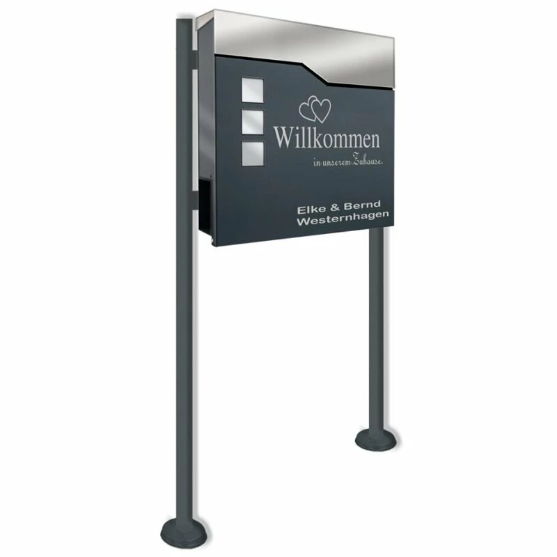 Standbriefkasten Set Gabriel in ANTHRAZIT GRAU RAL 7016 pulverbeschichtet mit Beschriftung
