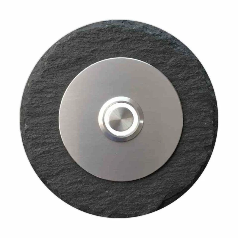 Türklingel aus Naturschiefer Durchmesser 100mm Rund mit Edelstahlronde