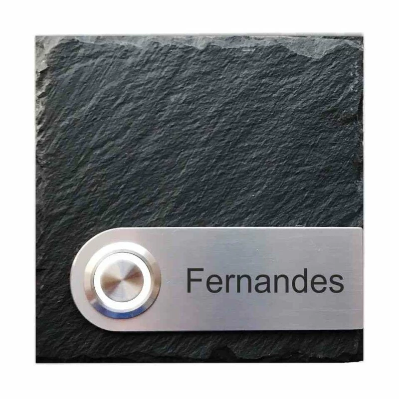 Türklingel Schiefer Edelstahl 100x100mm mit Edelstahl Namens Applikation