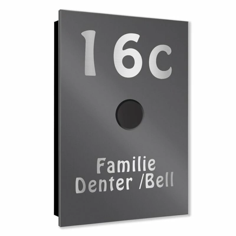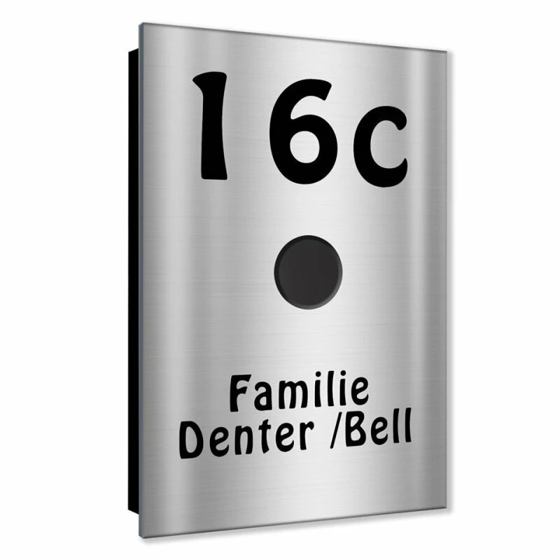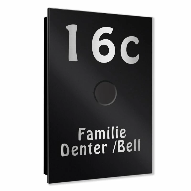 Der Klingelknopf besteht ebenfalls aus schwarzem Acrylglas. Sehr edle Optik.