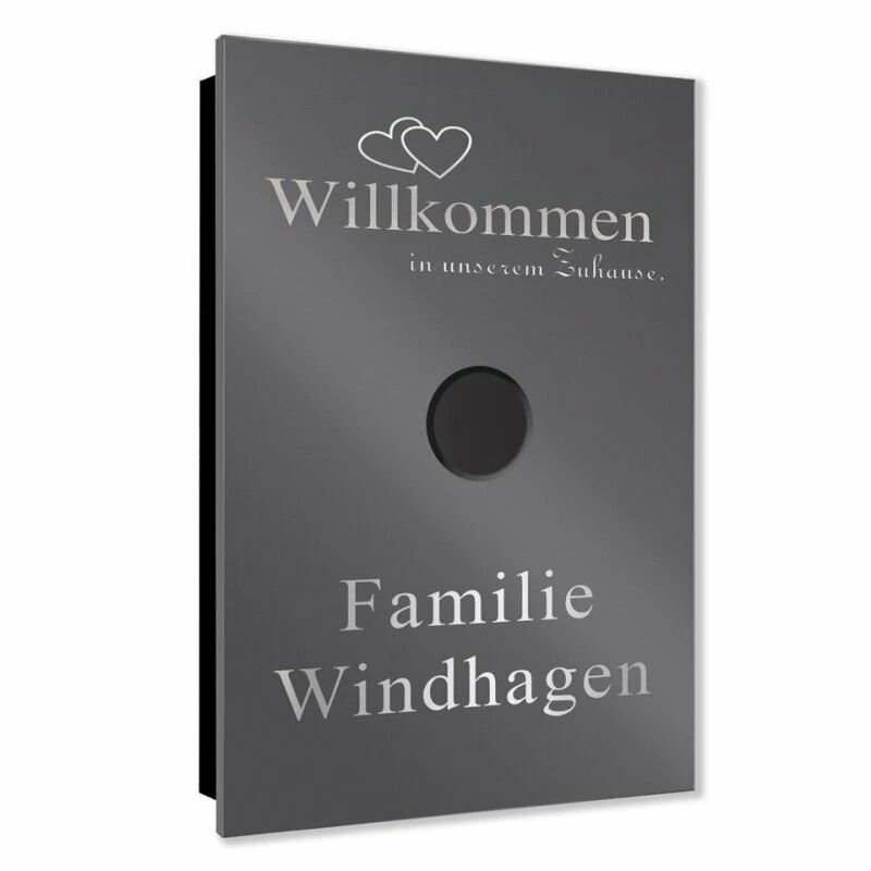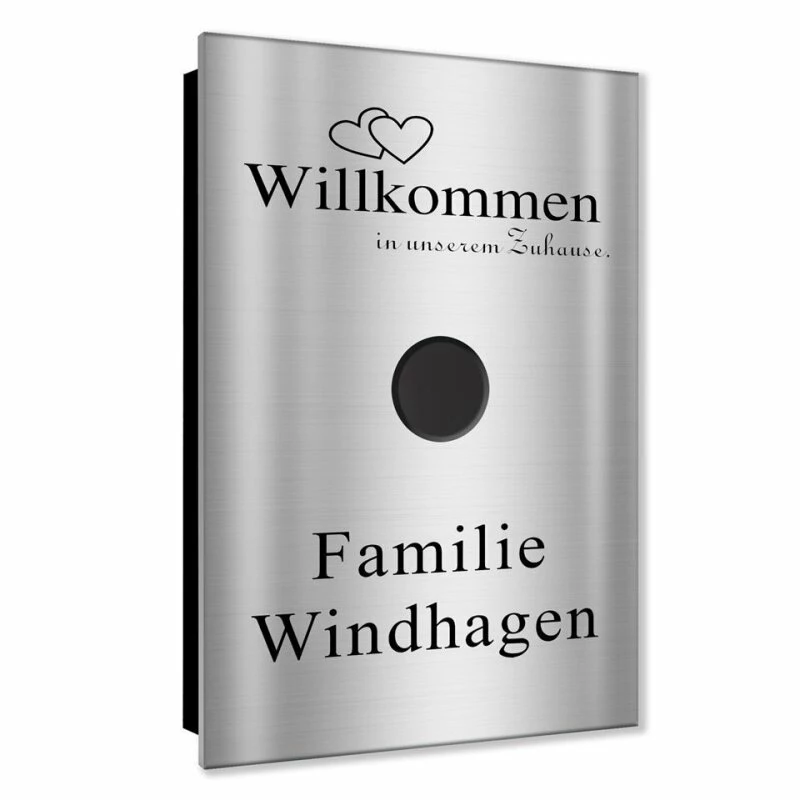die Edelstahlplatte wird mit einer Spezialbefestigung (jederzeit wieder abnehmbar) sicher auf der Aufputzplatte befestigt.