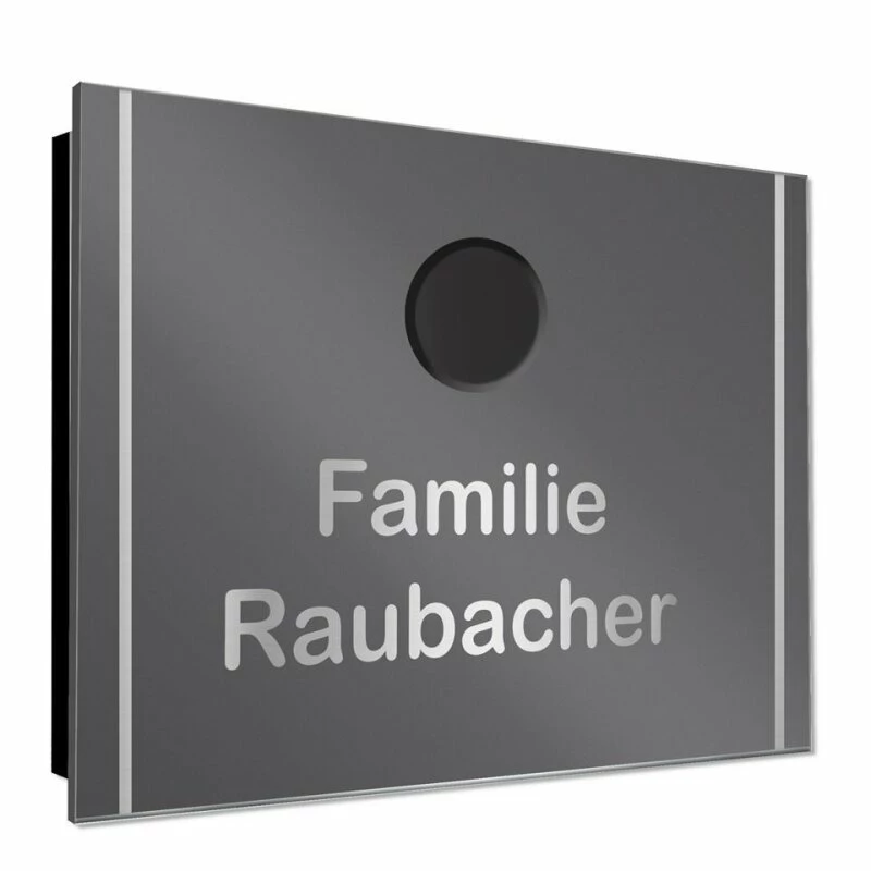 Der Klingelknopf besteht ebenfalls aus schwarzem Acrylglas. Sehr edle Optik.