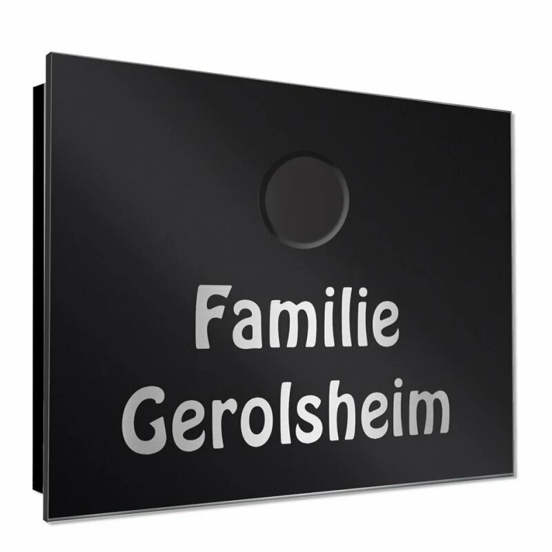 Der Klingelknopf besteht ebenfalls aus schwarzem Acrylglas. Sehr edle Optik.