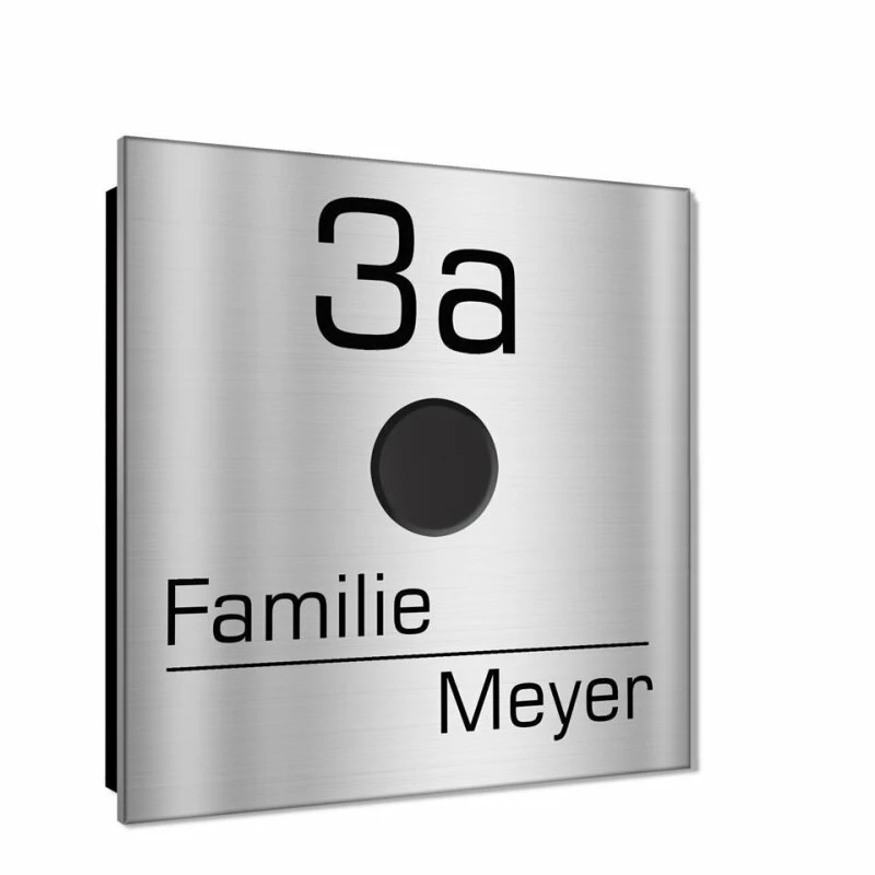 Der Klingelknopf besteht ebenfalls aus schwarzem Acrylglas. Sehr edle Optik.