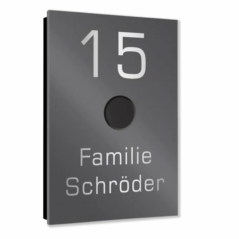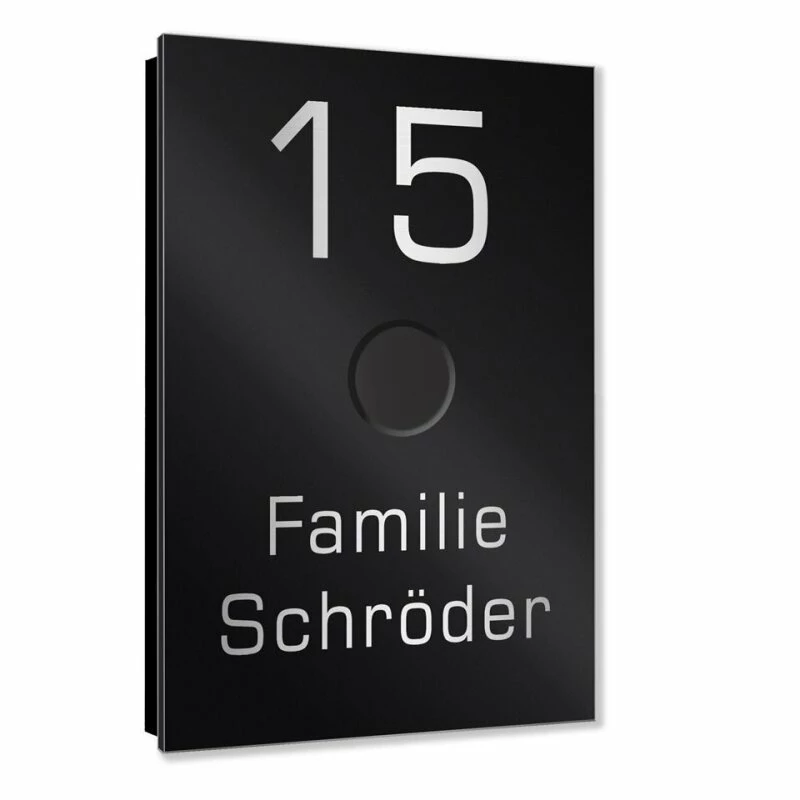 Der Klingelknopf besteht ebenfalls aus schwarzem Acrylglas. Sehr edle Optik.