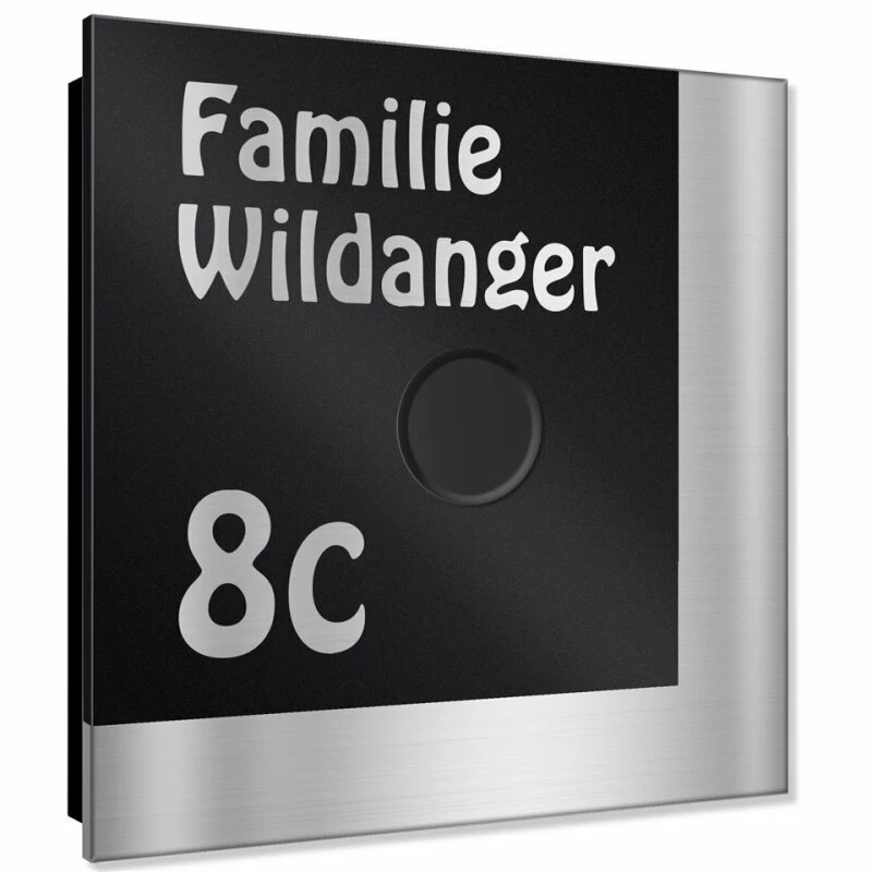 Der Klingelknopf besteht ebenfalls aus schwarzem Acrylglas. Sehr edle Optik.