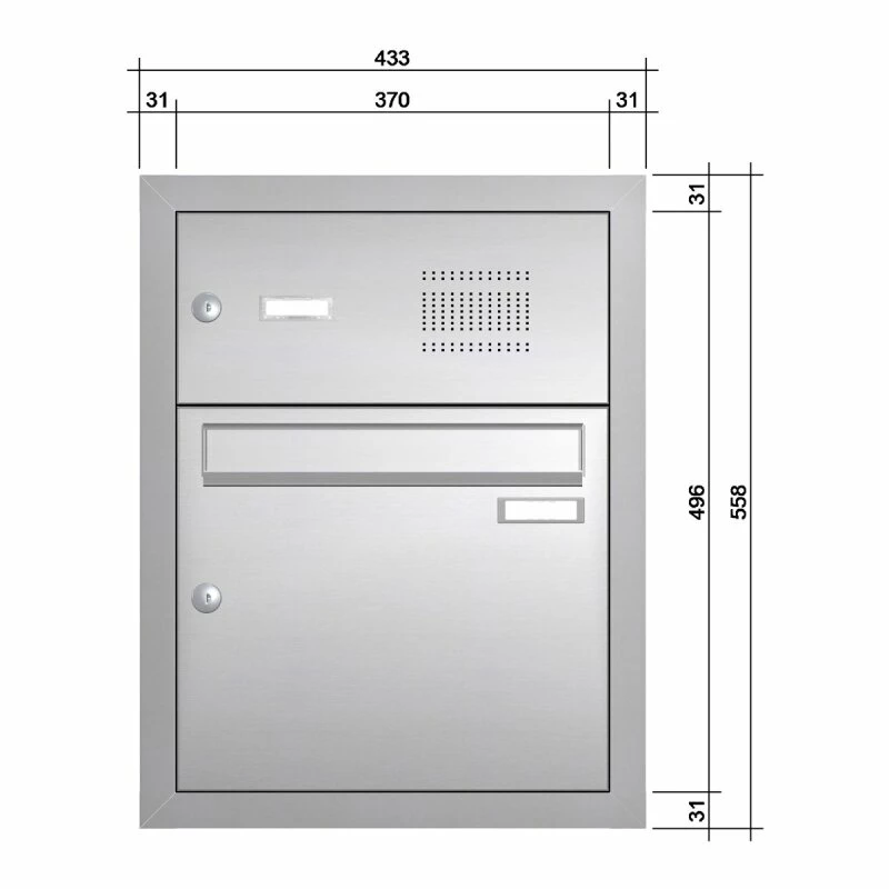 Briefkasten: 370 x 330 x 100 mm (BxHxT)