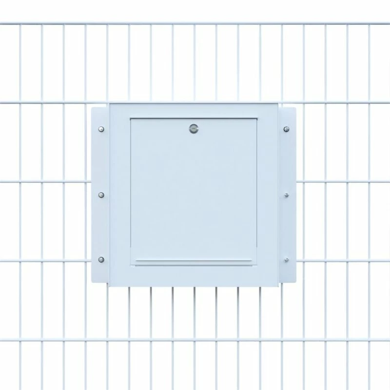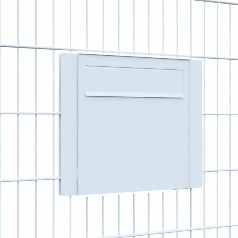 Der Zaunbriefkasten ist für die Montage in oder hinter einem Zaunfeld gedacht. Dabei ist es egal, ob die Montage auf dem separaten Standfuß oder direkt am Zaun erfolgt. Mittels der speziellen Winkelhalter kann der Zaunbriefkasten dazu im Ausschnitt eines Doppelstegmatten-Zauns klemmend befestigt oder an einen Lattenzaun angeschraubt werden.