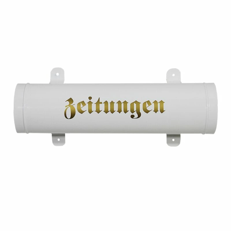 Zeitungsrolle Briefkasten Postkasten Katalogeinwurf Antik Nostalgie Weiß